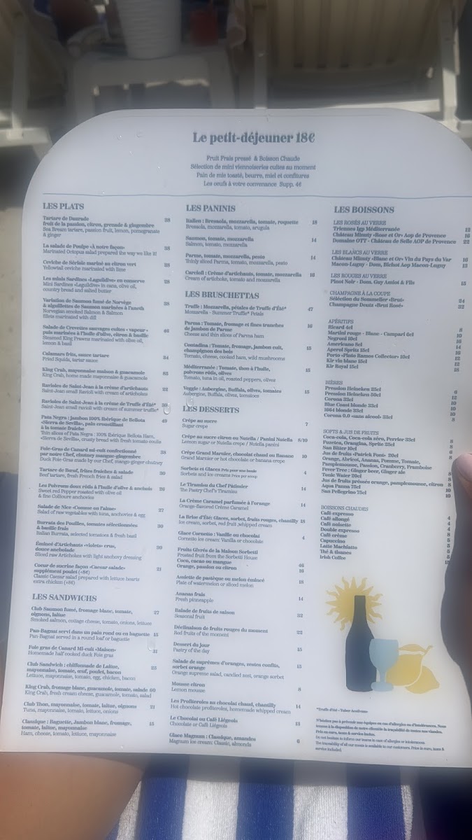 The menu features a delightful selection of French cuisine, with dishes that perfectly complement the serene surroundings. Customers have highlighted the delicious offerings, although some note the prices are on the higher side, typical for a premium beach experience. Enjoying meals while lounging on sunbeds adds a touch of luxury to your visit.